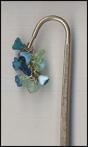 The blue glass flower cluster on this Shepherd’s Hook bookmark measures 1