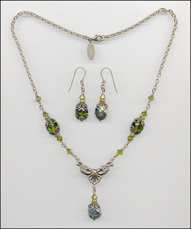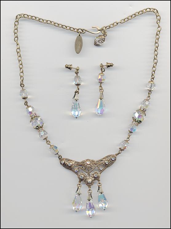 Necklace and earring set with vintage and new