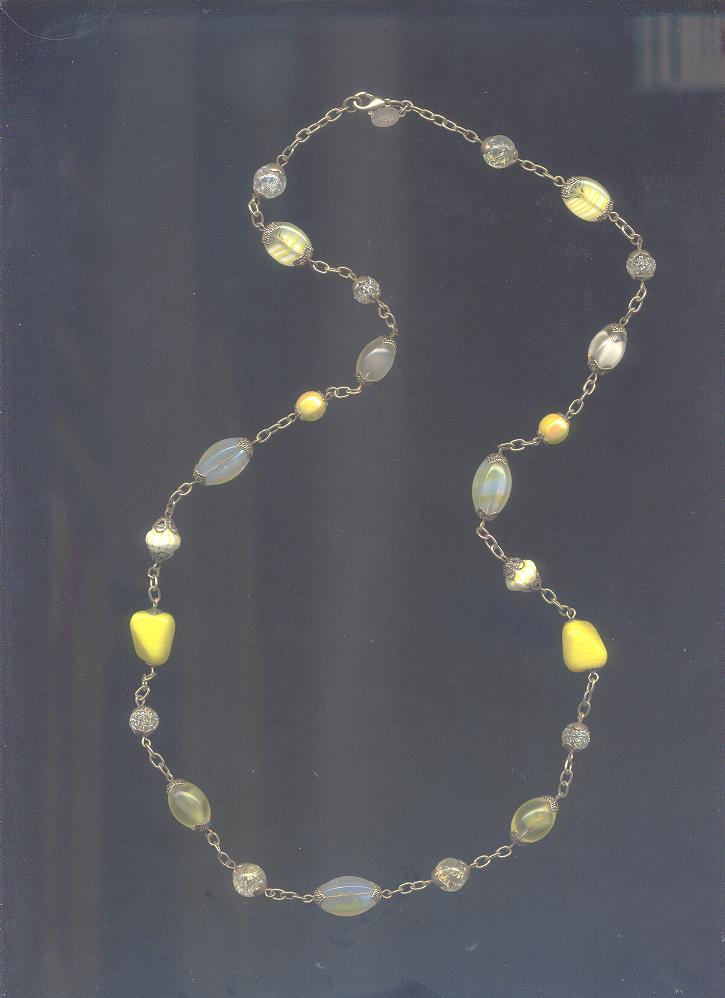 vintage glass beads in various shades of yellow. There are large yellow