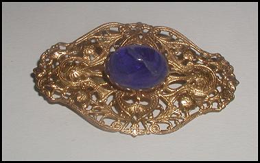 Vintage brass filigree with glass cabochon. The brass has no corrosion and