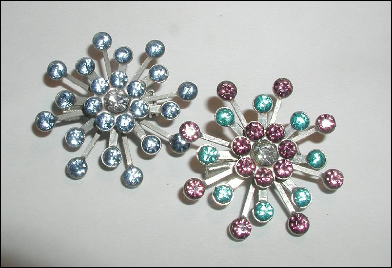 Vintage atomic style settings have vintage French chaton rhinestones. I